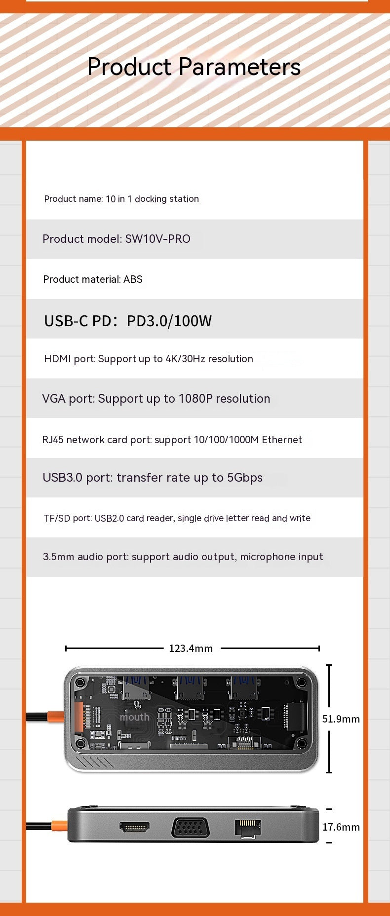 Number of interfaces: SW5R (100 m network port),SW5H,SW6H,SW6V,SW8V (100 m network port),SW10V (100 m network port),SW10V-PRO (gigabit network port),SW4U-C(USB3.0 * 4 USB-C charging),SW4U-A(USB3.0 * 4 USB-C charging)